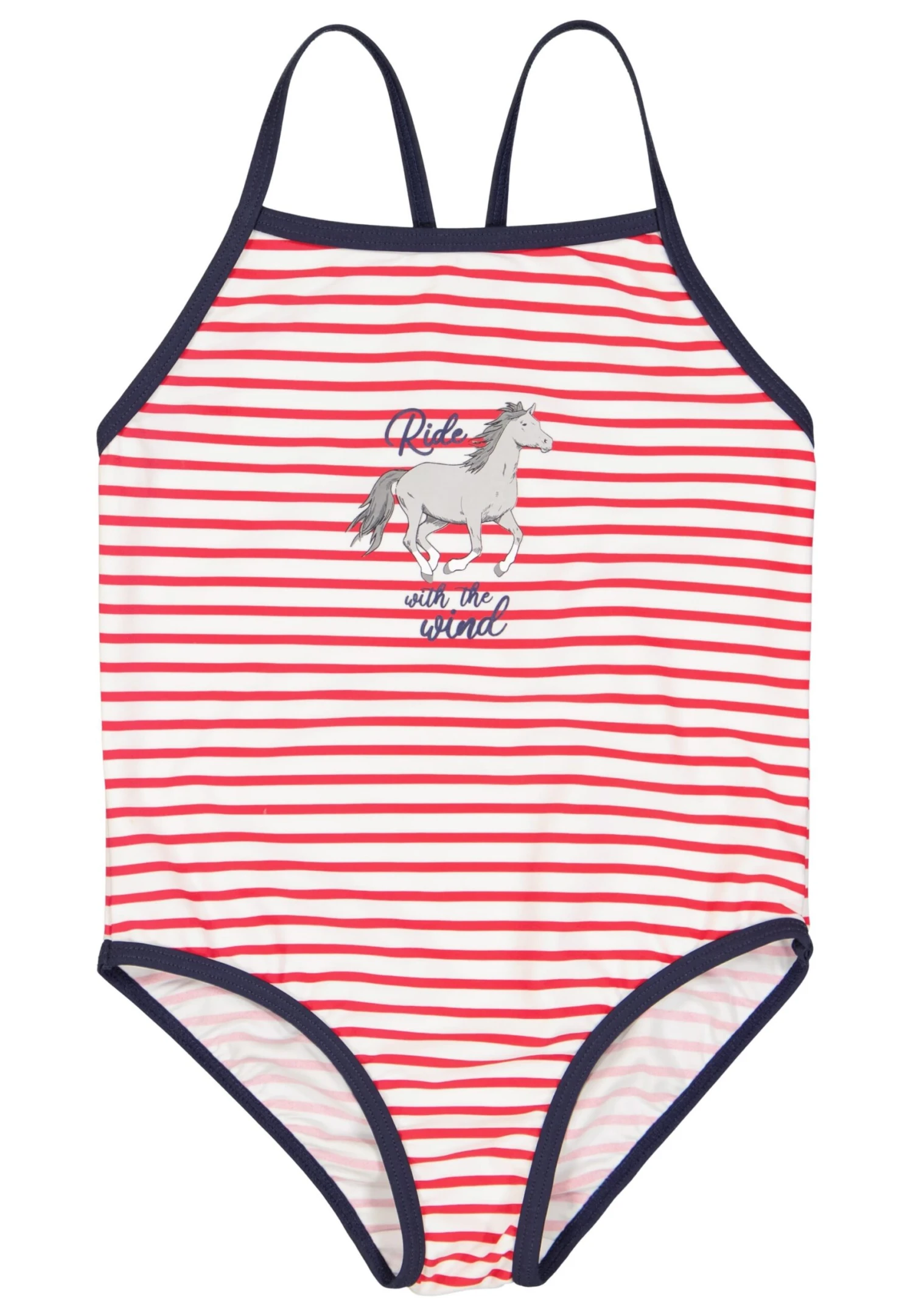 Toller Badeanzug von SALT AND PEPPER für Mädchen. Der gestreifte Badeanzug mit Pferde-Motiv erfreut jedes kleine Mädchen. Und ist dank seiner Materialzusammensetzung besonders pflegeleicht.