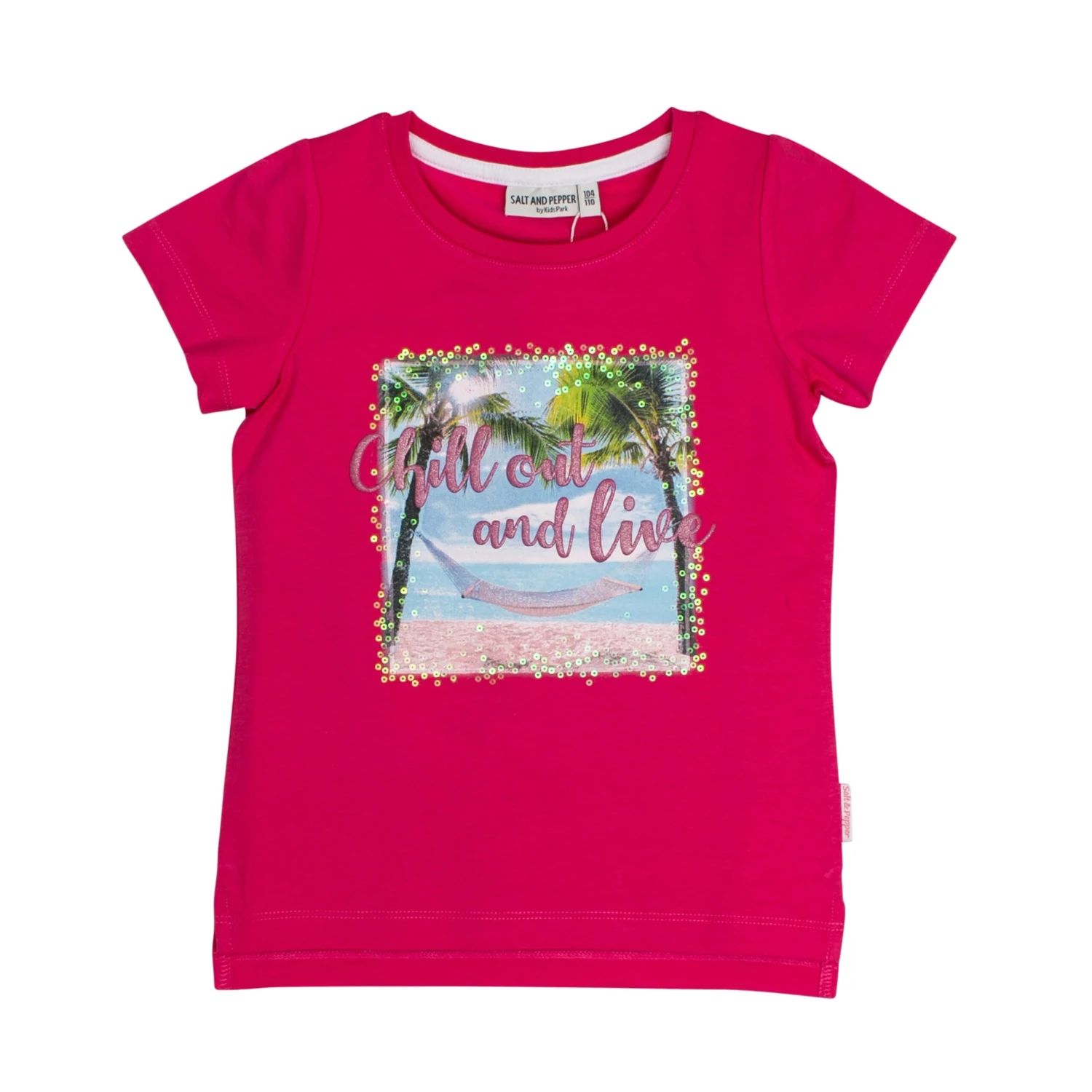 Der sommerliche Fotodruck mit Glitzer und Pailletten schmückt dieses einfarbige T-Shirt. Das Foto zeigt eine Hängematte, Palmen und den Ausblick aufs Meer. Dank der aufeinander abgestimmten Farben ist das Shirt vielseitig kombinierbar. Artikel fällt kleiner aus. Bitte eine Nummer größer bestellen.
