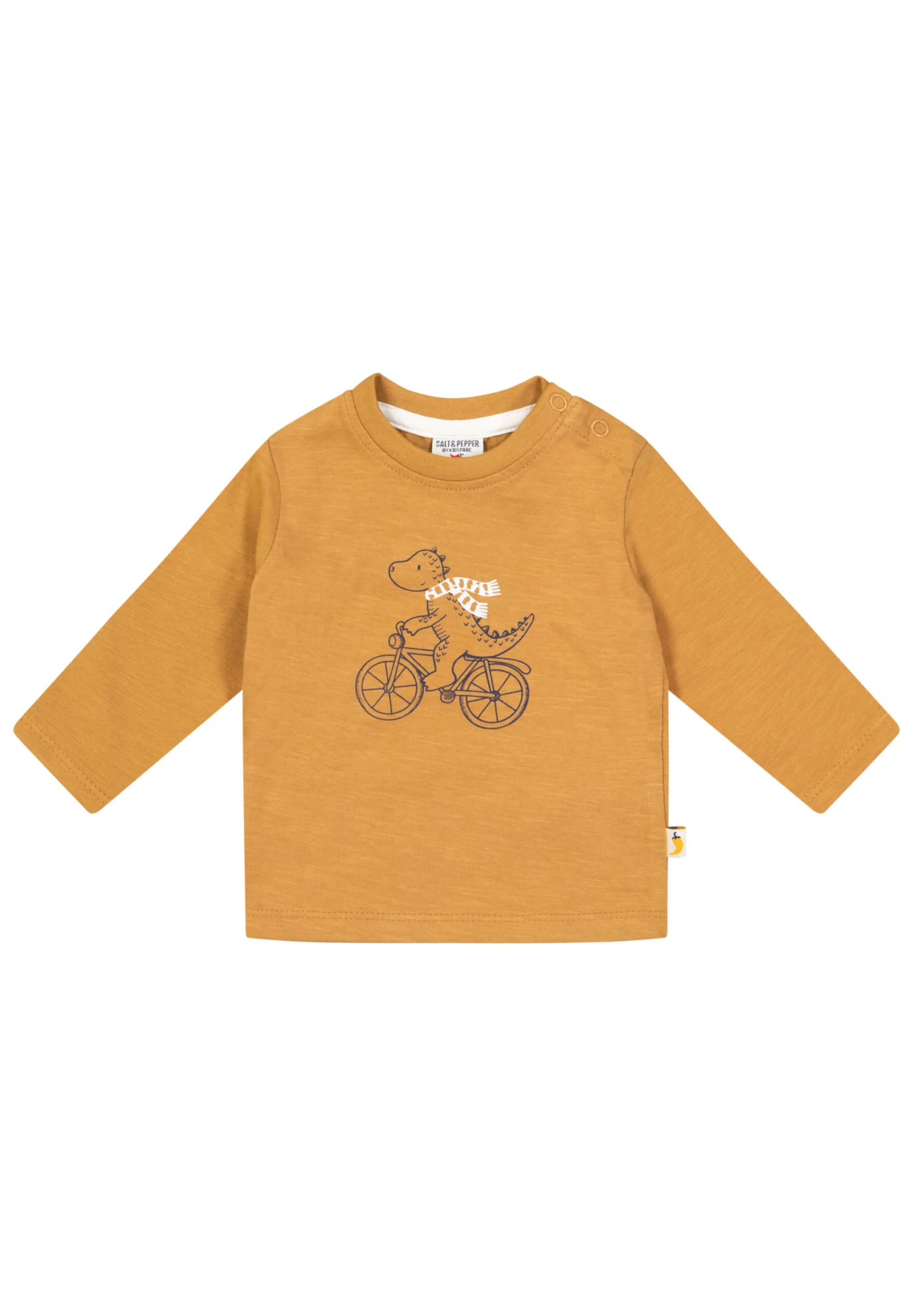 Baby Longsleeve von SALT AND PEPPER. Das niedliche Langarmshirt ist schlicht gehalten und zeigt einen süßen Dino-Print. Die Farben des Motivs sind farblich zum Nackenbändchen abgestimmt. Zwei Druckknöpfe an der Schulter erleichtern das An- und Ausziehen des Shirts. Die weiche Qualität aus Bio-Baumwolle liegt angenehm auf der Haut. Ein schöner Artikel, der viele Kombinationsmöglichkeiten bietet. Artikel fällt kleiner aus. Bitte eine Nummer größer bestellen.